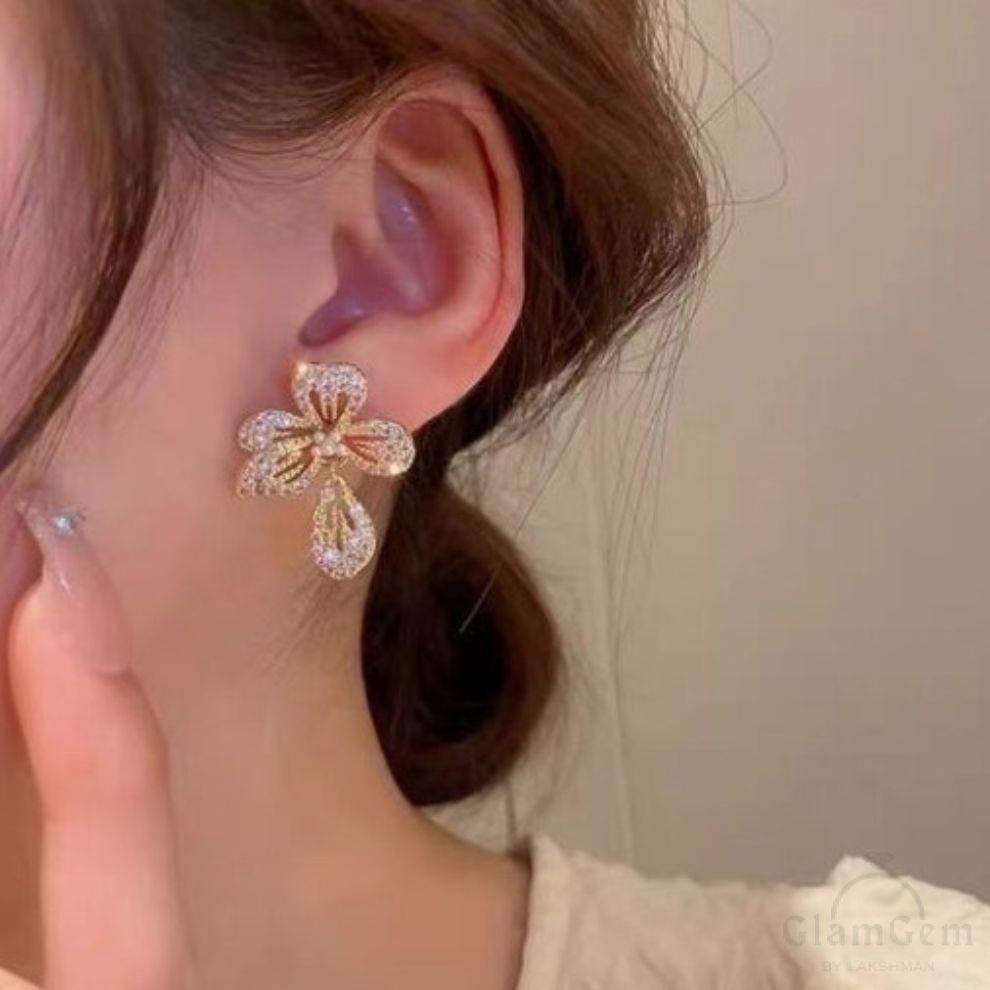 Elegant Floral Zircon-Studded Earrings feature delicate flower designs with sparkling zircon accents, blending timeless sophistication with a dazzling touch for any occasion
