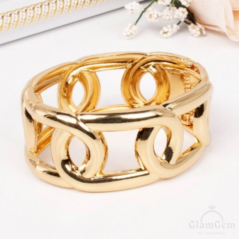 This elegant gold-plated bracelet features an openable design, blending sophistication and versatility for any occasion, adding a touch of glamour