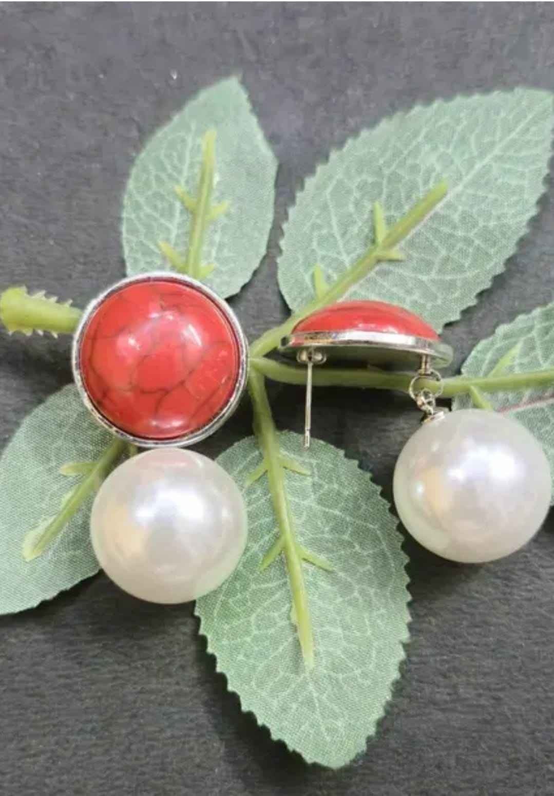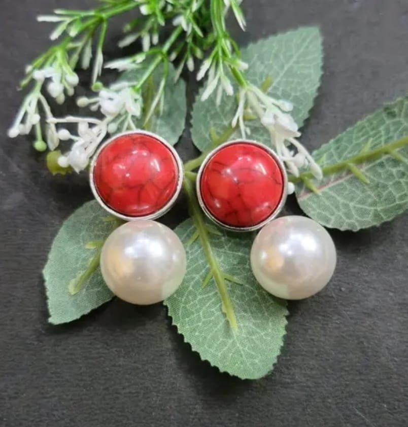 Elegant handmade earrings featuring a radiant Monalisa stone as the centerpiece, adorned with delicately hanging white pearls. Perfectly crafted with intricate detailing, these timeless accessories exude sophistication, making them ideal for both formal events and everyday elegance