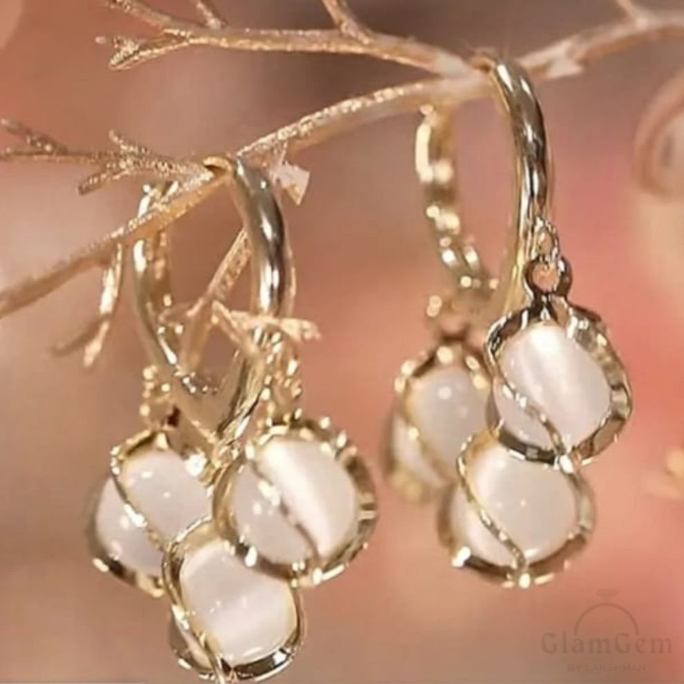 Moonlit Opal Drop Huggie Earrings with a Celestial Glow