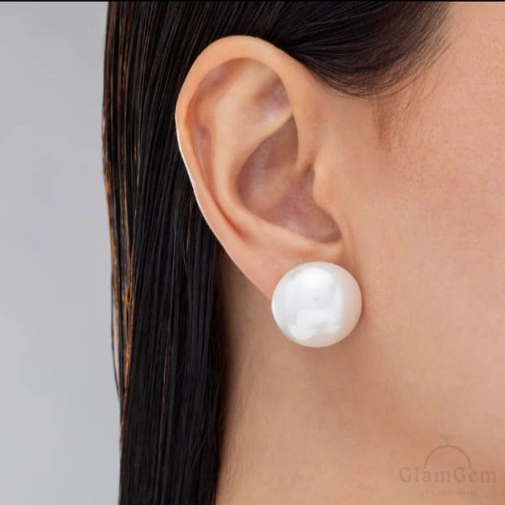 Chic oversized half pearl studs, offering a bold statement while remaining lightweight and comfortable for all-day wear. Effortlessly stylish accessory